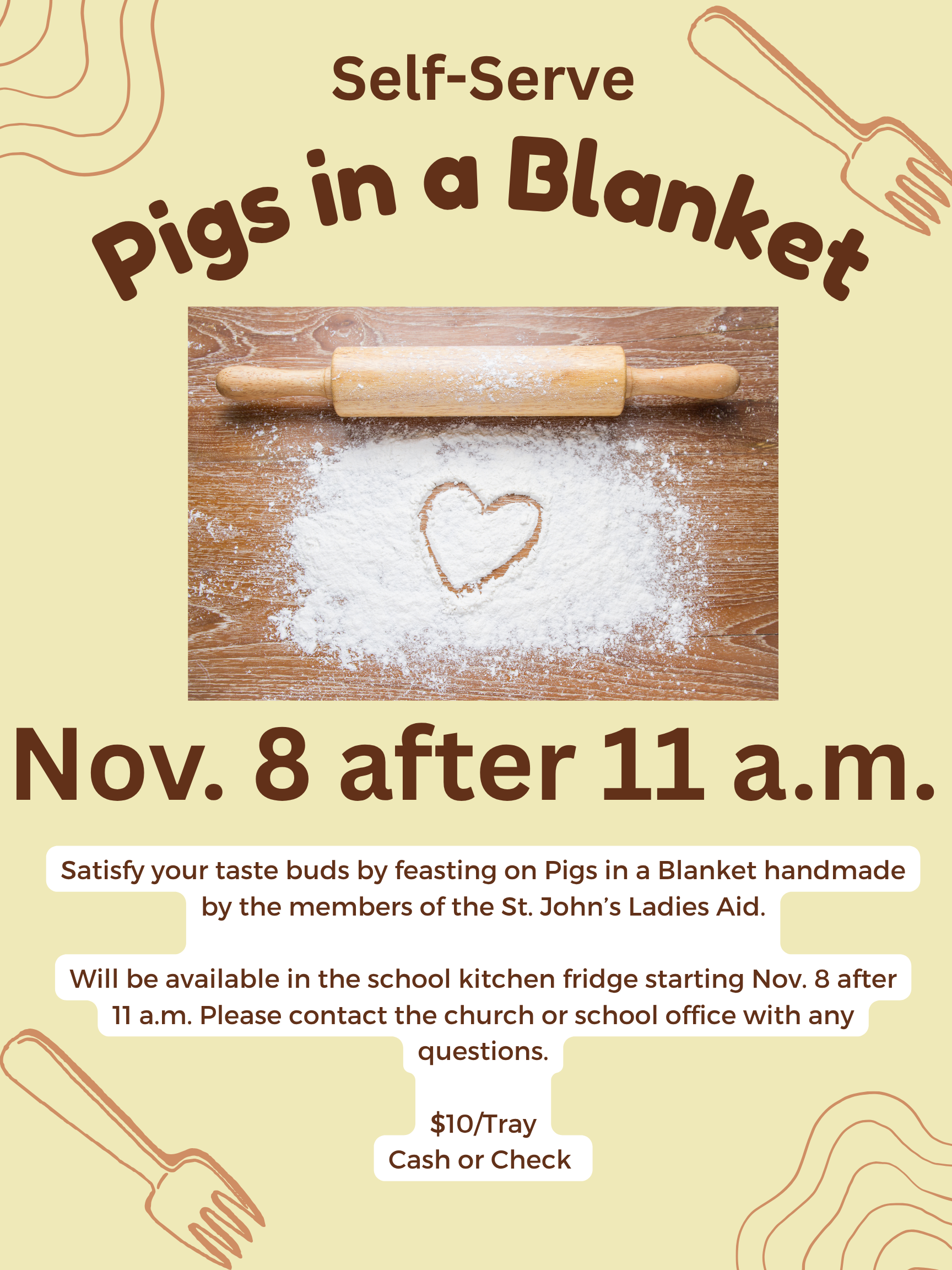 The Ladies aid will be making pigs-in-a-blanket starting at 9 a.m. and will be available for purchase in the afternoon.
