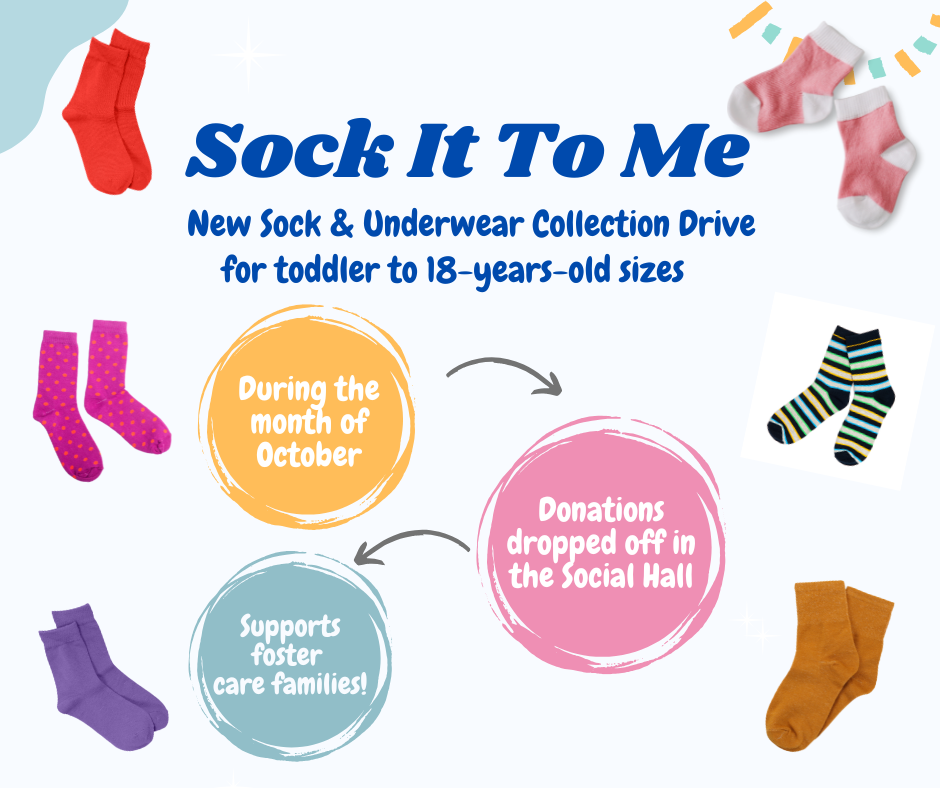 Throughout the month of October, we will collect new socks & underwear to support foster and kinship families through “The Closet.” We will collect sizes toddler through 18-years-old.